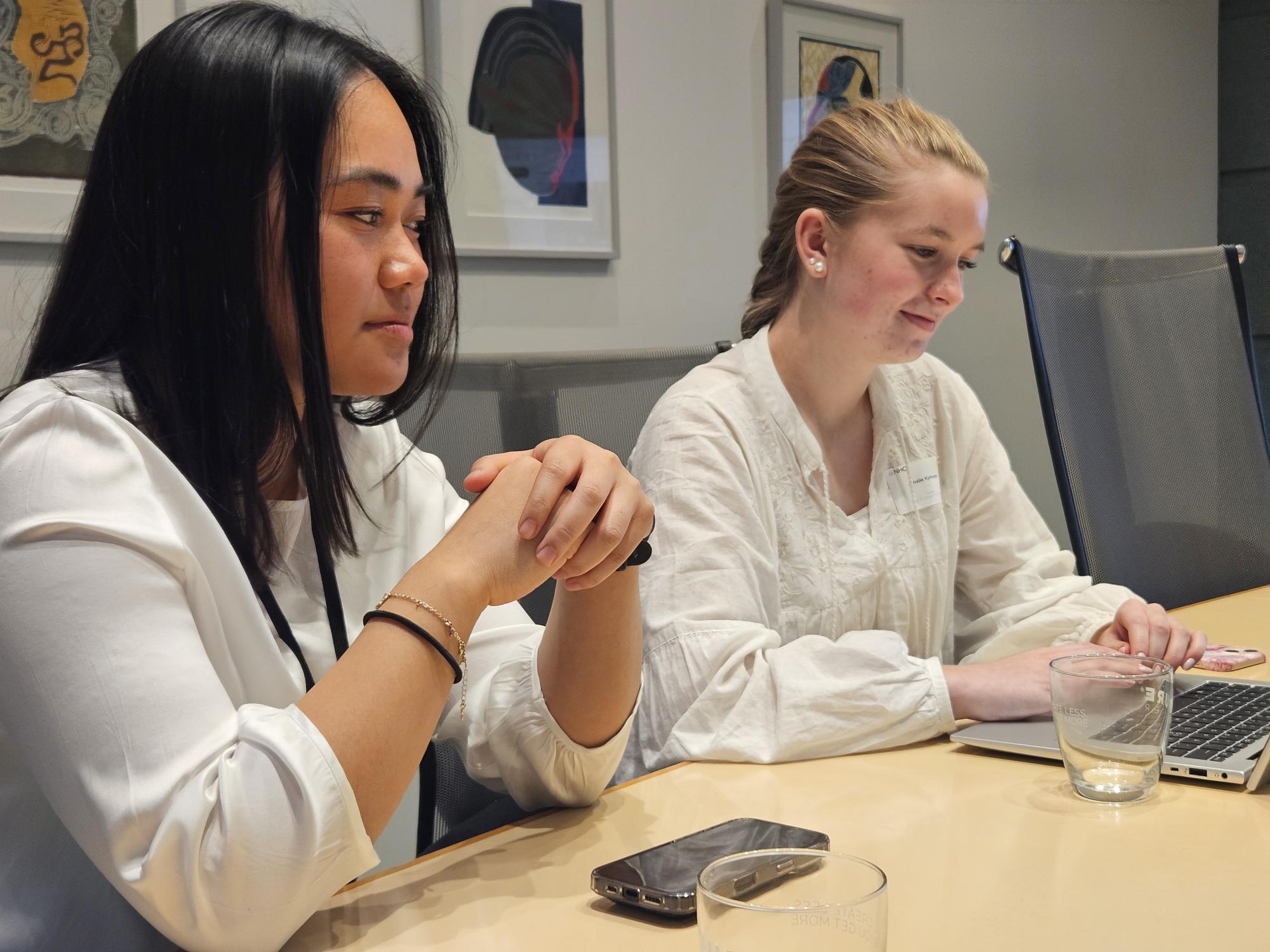 Amalie og Magnus går til daglig i henholdsvis 1. og 2. klasse på to ulike videregående skoler, og hadde ingen tilknytning eller særlig kjennskap til NHO når de søkte seg hit. Gjennom gode søknader og cv'er hadde de kommet seg gjennom nåløyet blant alle søknadene som kom inn til NHO. Til sammen var det 20 elever som var plassert i ulike områder i NHO-fellesskapet.